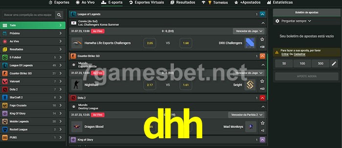 O dhh oferece uma grande seleção de opções de apostas em e-sports com probabilidades competitivas
